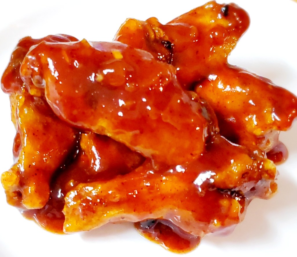 When we were testing my recipes, we found that the wings were cooking too fast on the outside and not enough on the inside. So, what do you do in that situation? We turned one of the fryers down. That still wasn’t going to work. Although cooking the wings low and slow was the right idea, our ETA for an appetizer was a max of 10 minutes from the time the waitress left the table, and that’s on an extremely busy night. I wanted those wings in the window and out of my kitchen within 5 minutes of our getting that order in, but how could we do it? We spent a couple of days experimenting and finally came up with this cooking process. Bake the wings off first, then deep fry to get that crispness. The wings ended up being a success and a hot item on the menu.