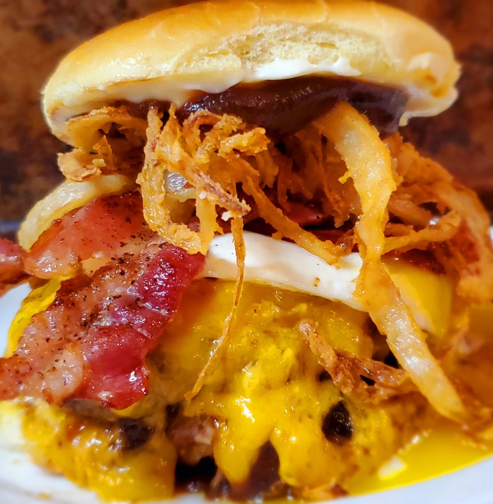 This tastes as insane as it looks. I posted this burger to Twitter a couple of years back and it gained quite a few views but, the picture wasn’t that great. That’s why I decided to resurrect this monstrosity and recapture the image. I hope you LOVE it!