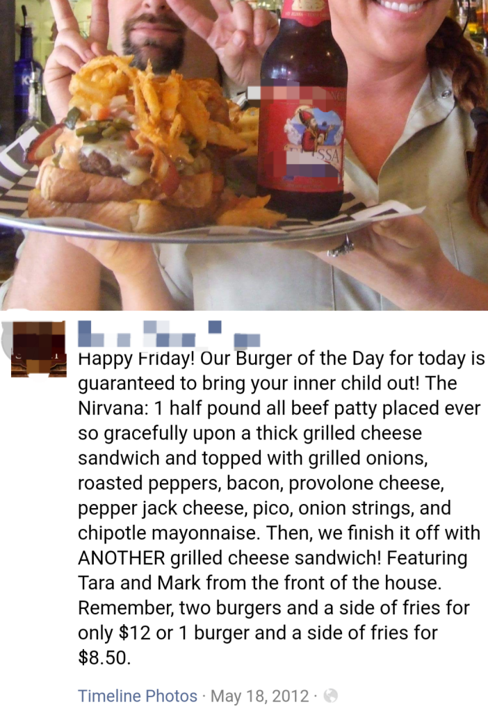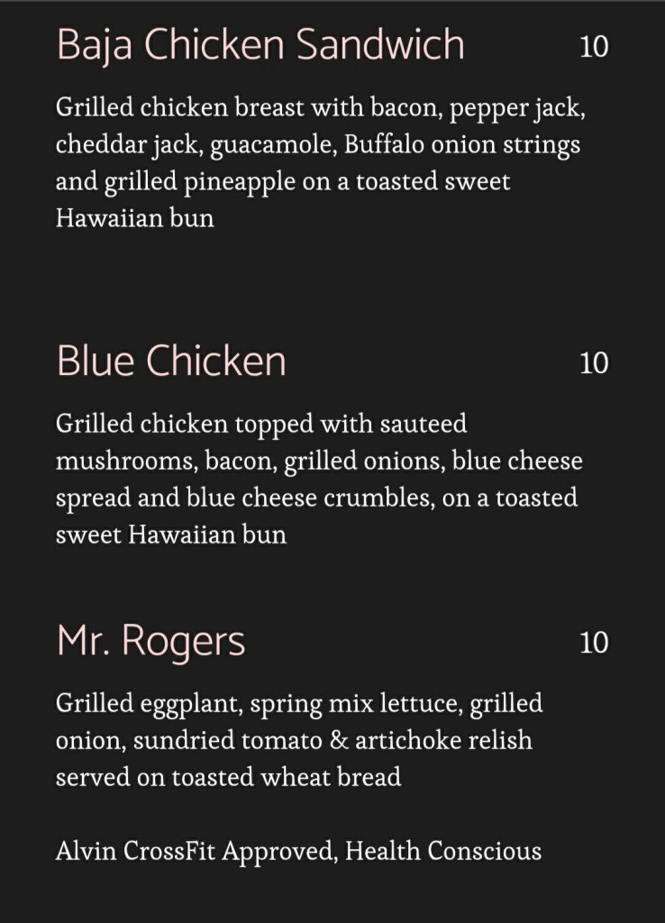 This was my tribute to the band. Unfortunately, the Baja Chicken Sandwich was not part of NBM (national burger month) so, I don’t have a pic of it. Luckily, this particular restaurant is still using most of the menu I wrote and the Baja is running strong, as always.I was given 3 days to come up with an award winning menu for a restaurant that was going to be in a 100 year old building that was then in the process of renovations. I was asked by one of the shareholders if I was sure I wanted to name it the Baja because Baja reminded this particular guy of the desert. My response was,….I’m positive 🤨. Blue chicken was initially Blue Chick, but was obviously changed after I left. There was also a Hot Chick which was changed to Buffalo chicken. The Mr. Roger’s was my tribute to Fred Roger’s and a great item to put on my menu for my vegetarian customers. I wanted everyone to be able to come and enjoy my food, not just meat eaters. The double is self-explanatory as well as the Amigo (the name just fit when I put this together in my head). I came up with the Tilula as a result of my love for the movie Fried Green Tomatoes. I was thinking about the way the girls always scream “Towanda!!!” But, I didn’t want to copy the movie, so I thought, hmmm Tilula is a great southern name and would have fit perfectly in that movie. And there’s Big John. What do you think of when you hear about the story of Big John? Big….so I made this my big meaty-cheesy burger. Then of course there were the Scotch Eggs that took my staff and I a good while to figure out how to cook these all the way through in high temp deep fryers and the Witch Doctor Wings that were also a pain until we started baking them off first, GST Club etc. Most of my creations are still there so I guess it’s something to be proud of when I drive by and see the place packed. I can think, thats MY menu. I did that when so many people thought I couldn’t. Of course, I’ve written other bar menus and tasting menus, but this place put 3 other restaurants next door out of business and yet mine still stands strong. And to think, before I got ahold of that menu, they were planning to do Tapas in that place that would have surely closed down along with the steak house it was copied from. (Pat on the back) lol.
