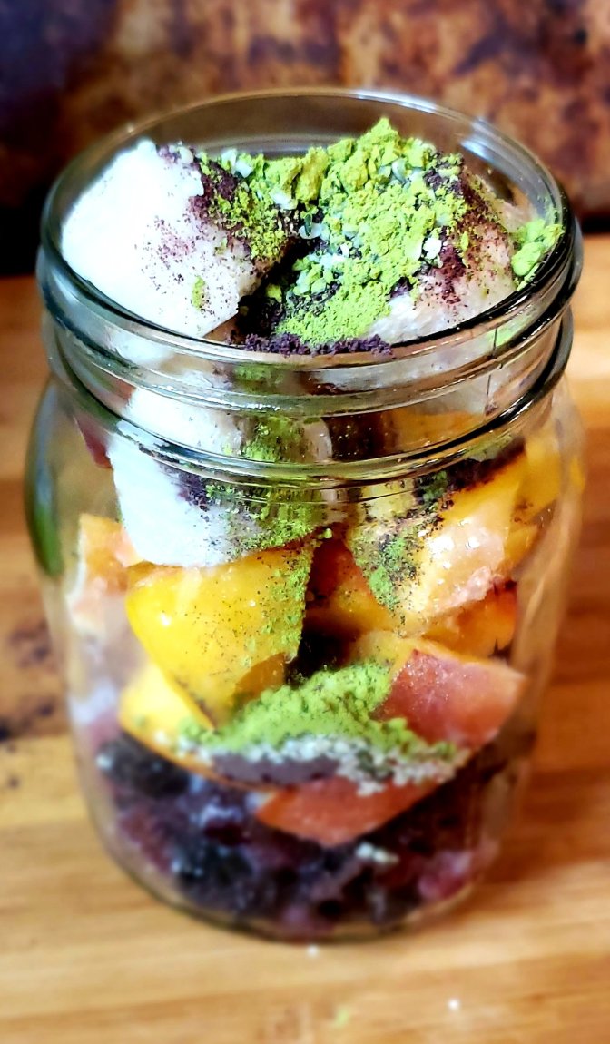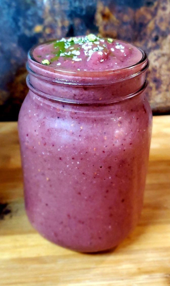 Combining all ingredients in a blender and puré until smooth. Pour into your desired smoothie cup, (I like mason jars), and garnish with a little matcha and hemp seeds.