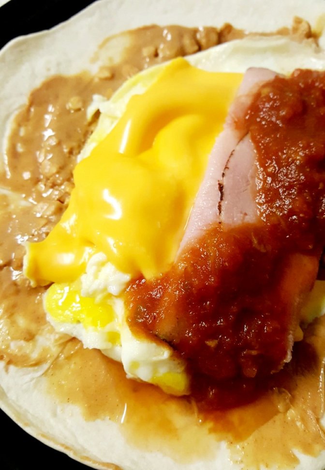 As crazy as this sounds, this breakfast taco was really good. I made it several years ago on my way out the door. I was working 8 a.m. to 11 p.m. mon-sat and had zero time to eat so I needed sustenance. I have no idea why I took the picture of it but, I ended up posting it to my Twitter and it got more views and likes than anything else. Go figure. Nevertheless, it’s so simple and made with such common ingredients that a struggling college student should have no problem throwing this together before class.