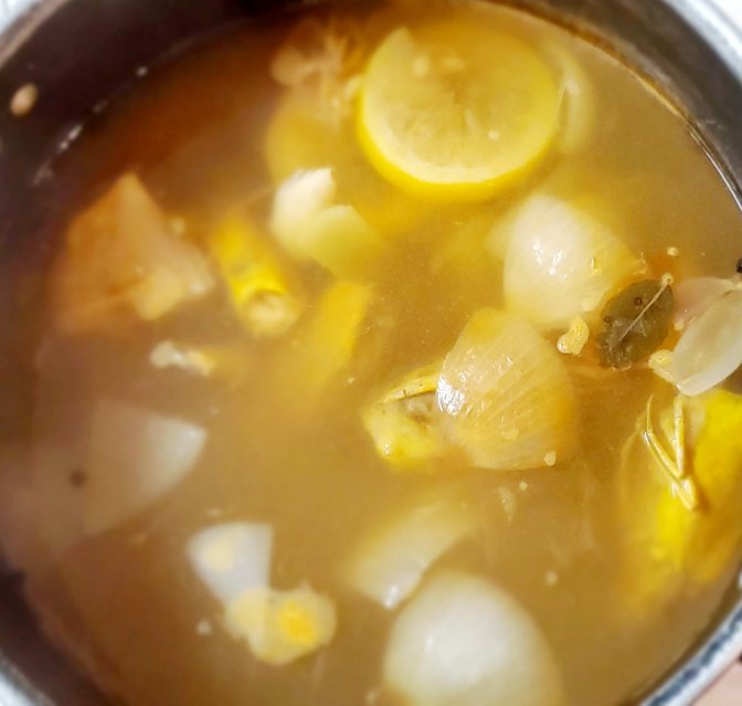 Transfer everything to a large stock pot and bring to boil over high heat. Reduce heat to a low boil, stirring periodically. Boil for 1½ hours. Remove from heat and allow to cool. Once cooled, strain with a fine mesh strainer and transfer to freezer bags.