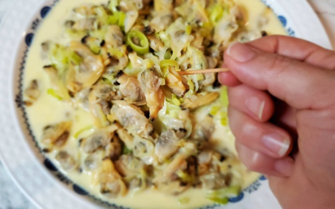 For an easy appetizer due to unexpected entertaining, try this amazing dish; sweet clams in a white wine cream sauce with leeks and garlic. Being that I love making mussels with leeks, I decided to try it out with the clams I bought from the fish market in Kemah. Needless to say, they came out great and there was enough to feed multiple guests. Serve with toasted Italian bread.