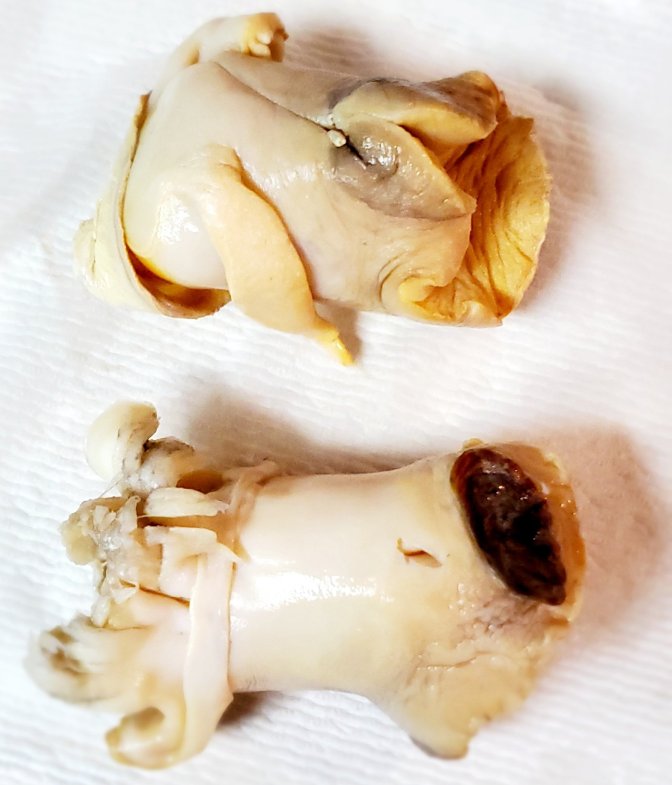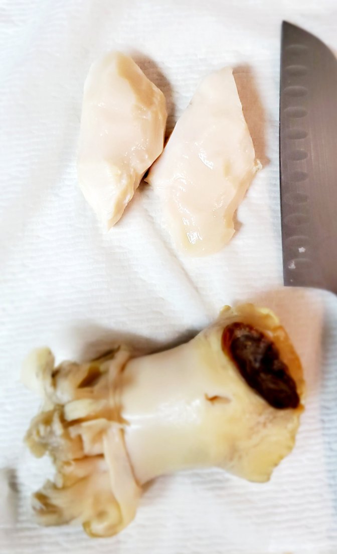 To prepare the conch, slice off the ends and trim the top layer of meat away so you’re left with a bright white flesh. Make sure there are no more spots that are as tough as cartilage. If so, trim those spots away as well. Once you’ve trimmed up the conch, slice in half lengthwise. Next, thinly slice the conch and dice into small bite-sized pieces. (Conch is not a tender meat) transfer diced conch to a large bowl. Dice shrimp into ⅙, they should be slightly larger pieces than the conch. Transfer to the same bowl with the conch. Add the lime and orange juice. Cover and refrigerate for 40 minutes. Give it a quick stir and return to fridge to marinade for an additional 20 minutes or until the shrimp is no longer grey and has cooked through.