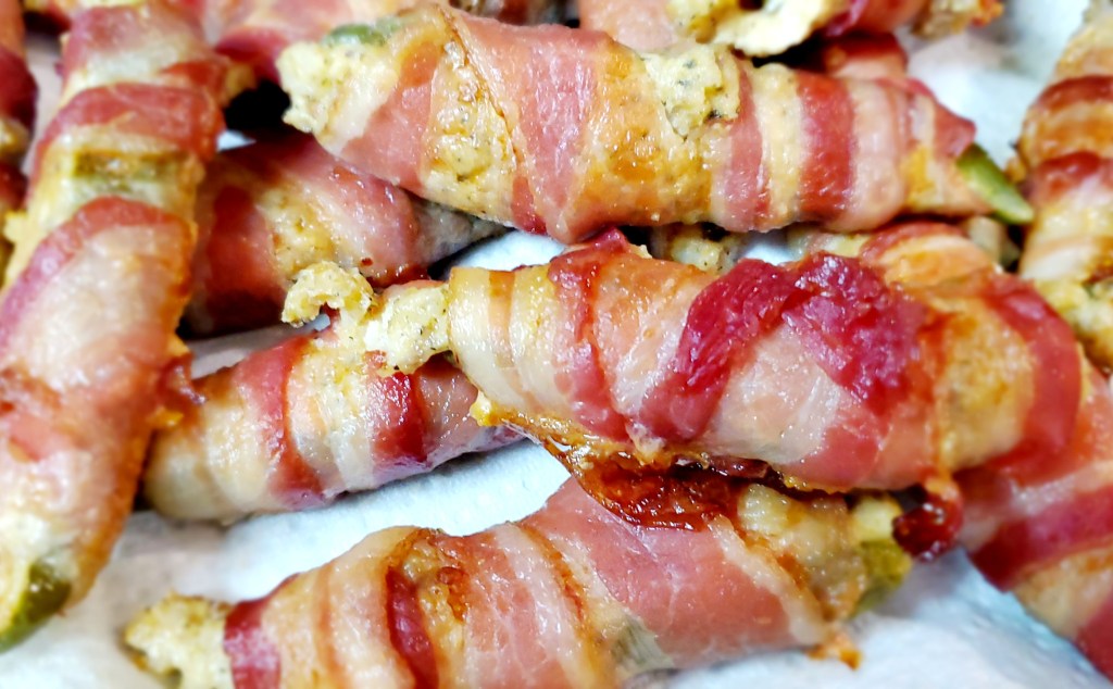 This is actually a recipe my husband and I came up with one day when we were barbecuing. Spicy jalapeños stuffed with the classic cream cheese but, with a twist. Everyone has loved these things and I’m so glad we came up with them because honestly, I’ve been burned out on the classic method of stuffed jalapeños since the 90’s.